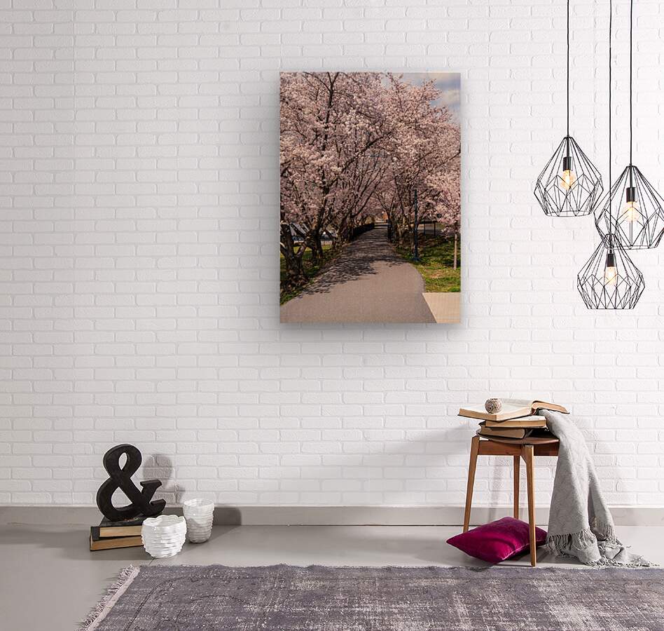 Cherry blossoms over walking trail  by the river in Morgantown W Canvas print