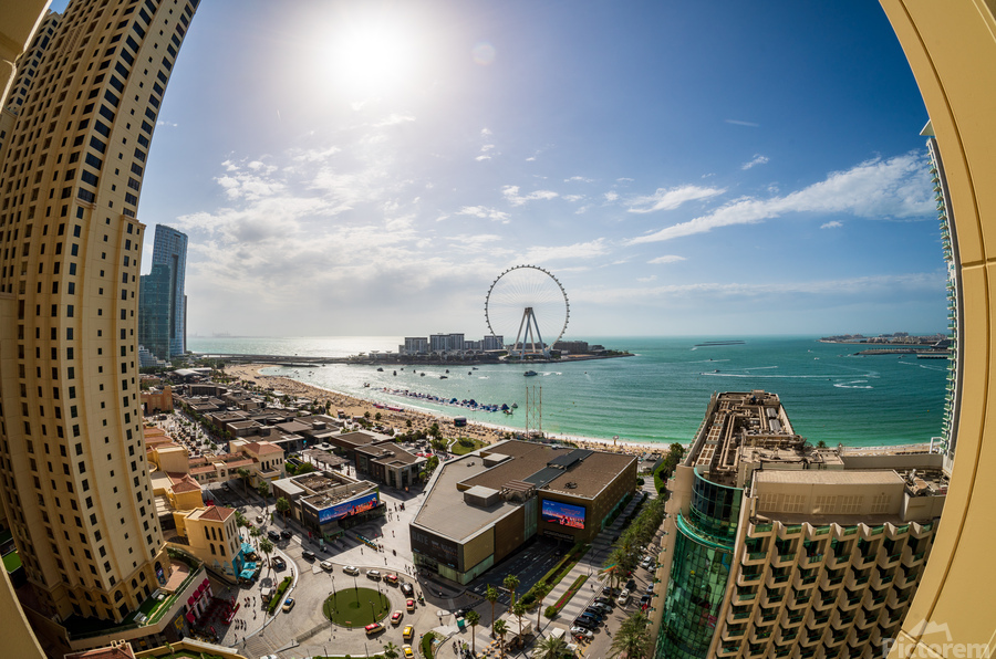 FISHEYE VIEW OF DUBAI OBSERVATION WHEEL ON BLUEWATERS ISLAND