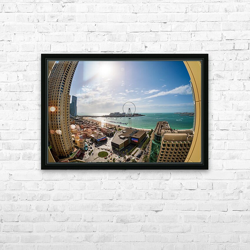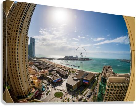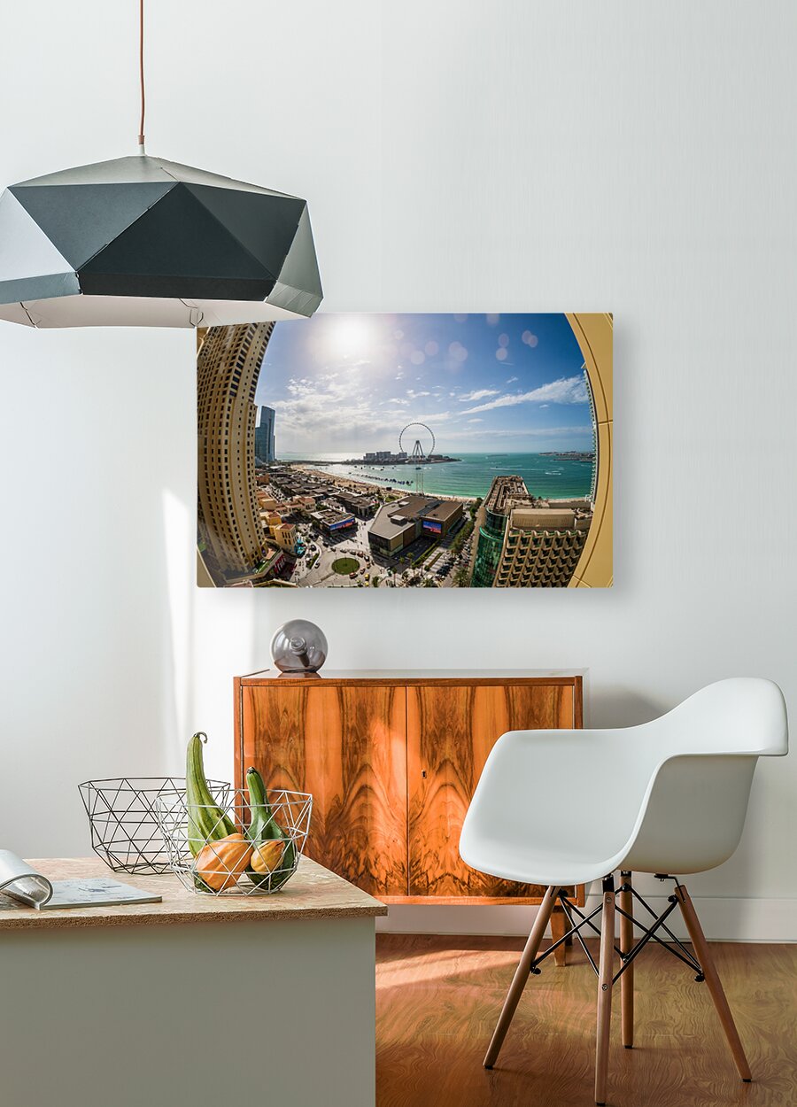 Get this artwork "Fisheye view of Dubai observation wheel on Bluewaters Island" in a framed print.