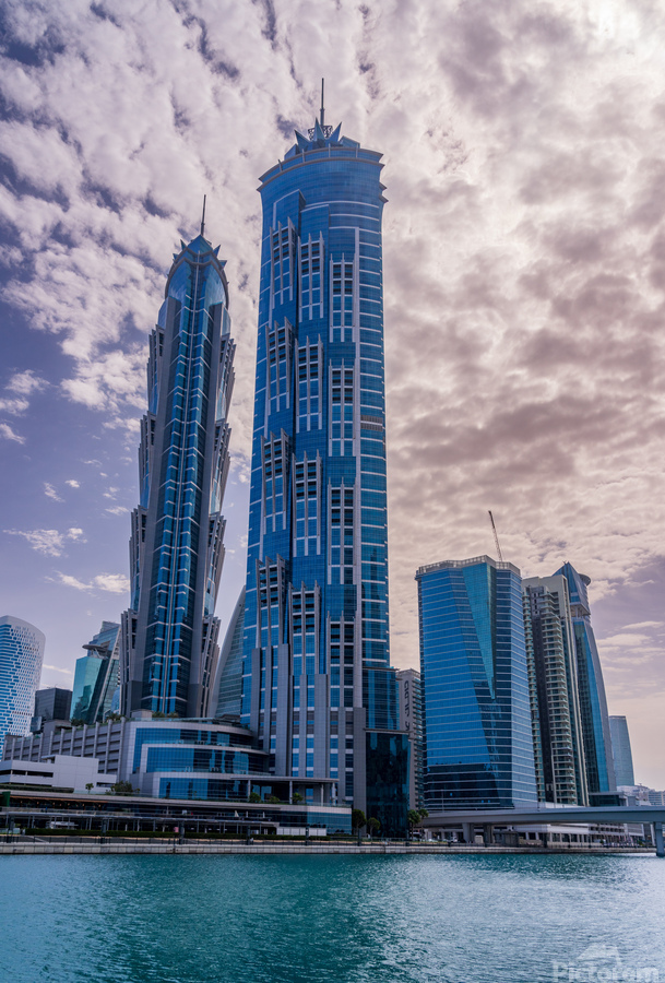 ABOUT THIS ARTWORK: MODERN APARTMENTS OF DUBAI BUSINESS BAY ALONG THE CANAL