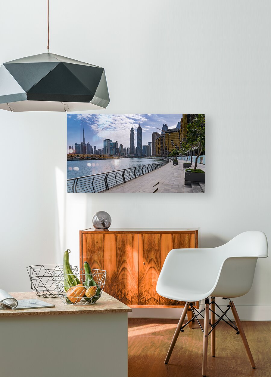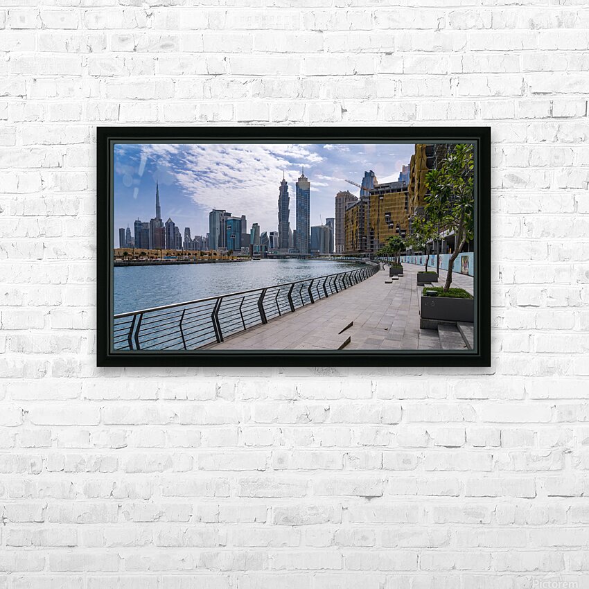 Low rise homes in front of modern apartments of Dubai Downtown d Picture Frame Printing