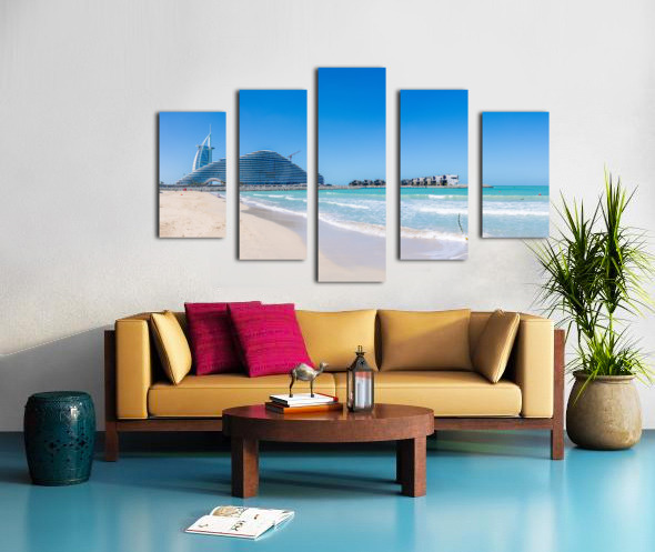 ABOUT THIS ARTWORK: ICONIC BURJ AL ARAB BEHIND NEWLY CONSTRUCTED MARSA AL ARAB HOTEL