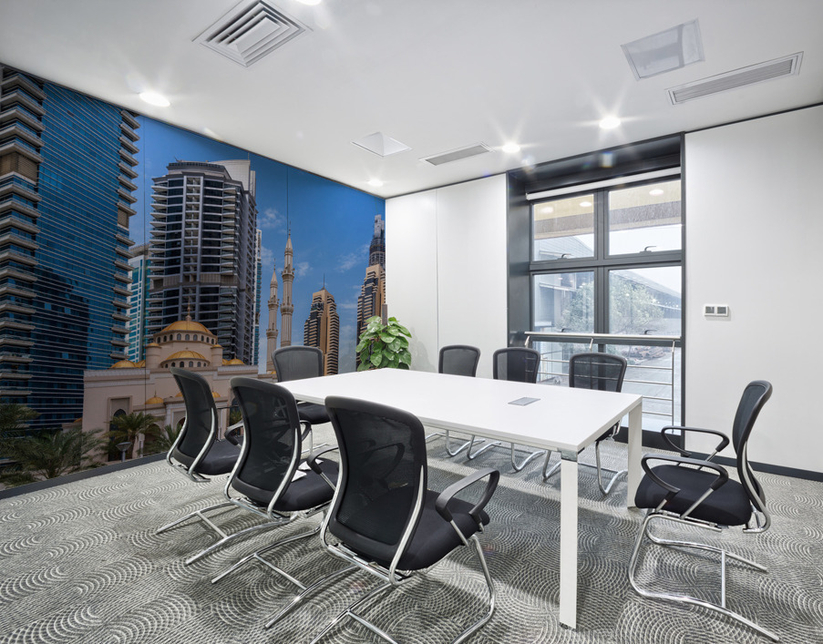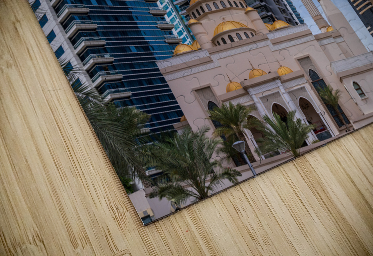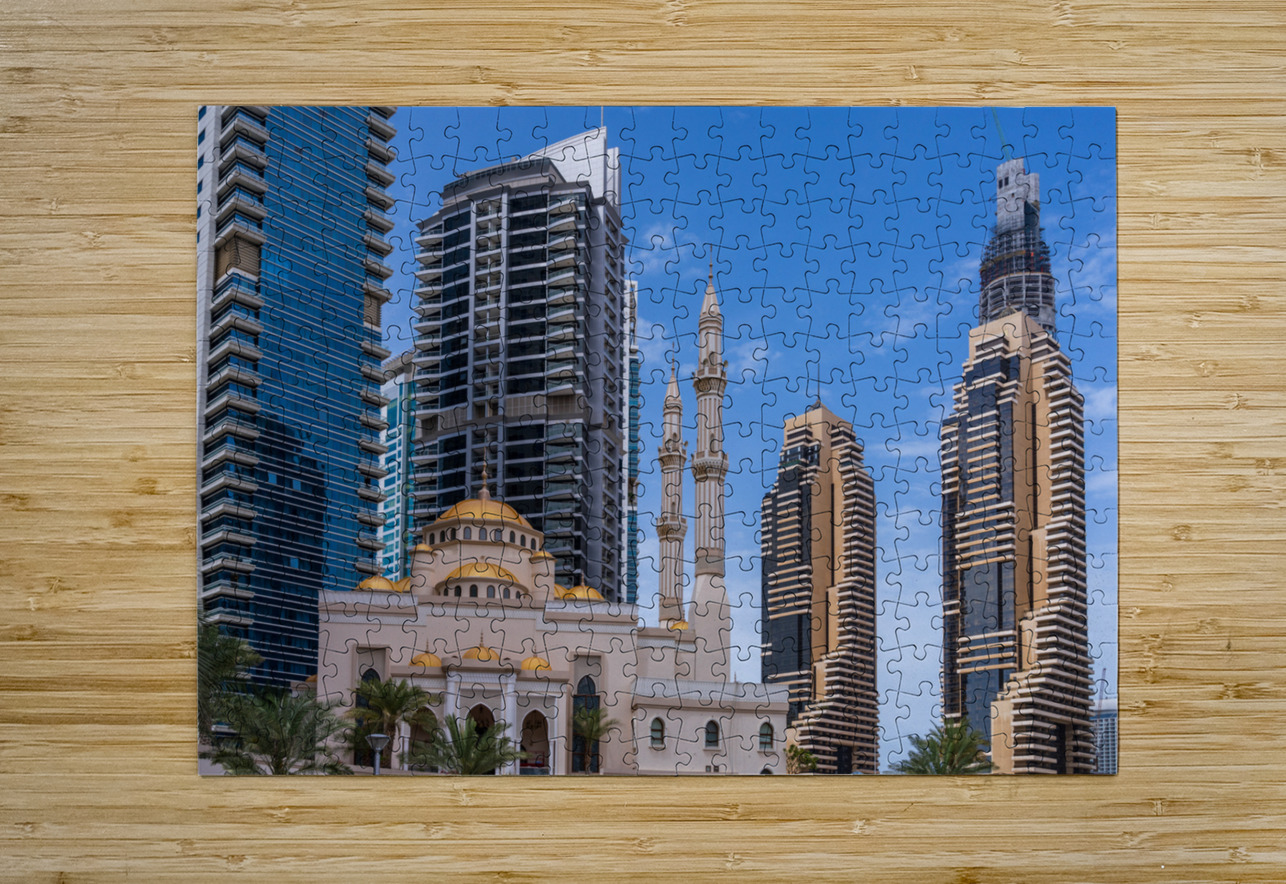Mosque among towers on the waterfront at Dubai Marina UAE Steve Heap Puzzle printing