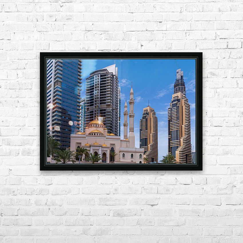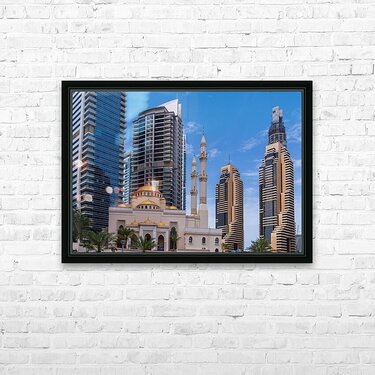 Mosque among towers on the waterfront at Dubai Marina UAE Picture Frame Printing