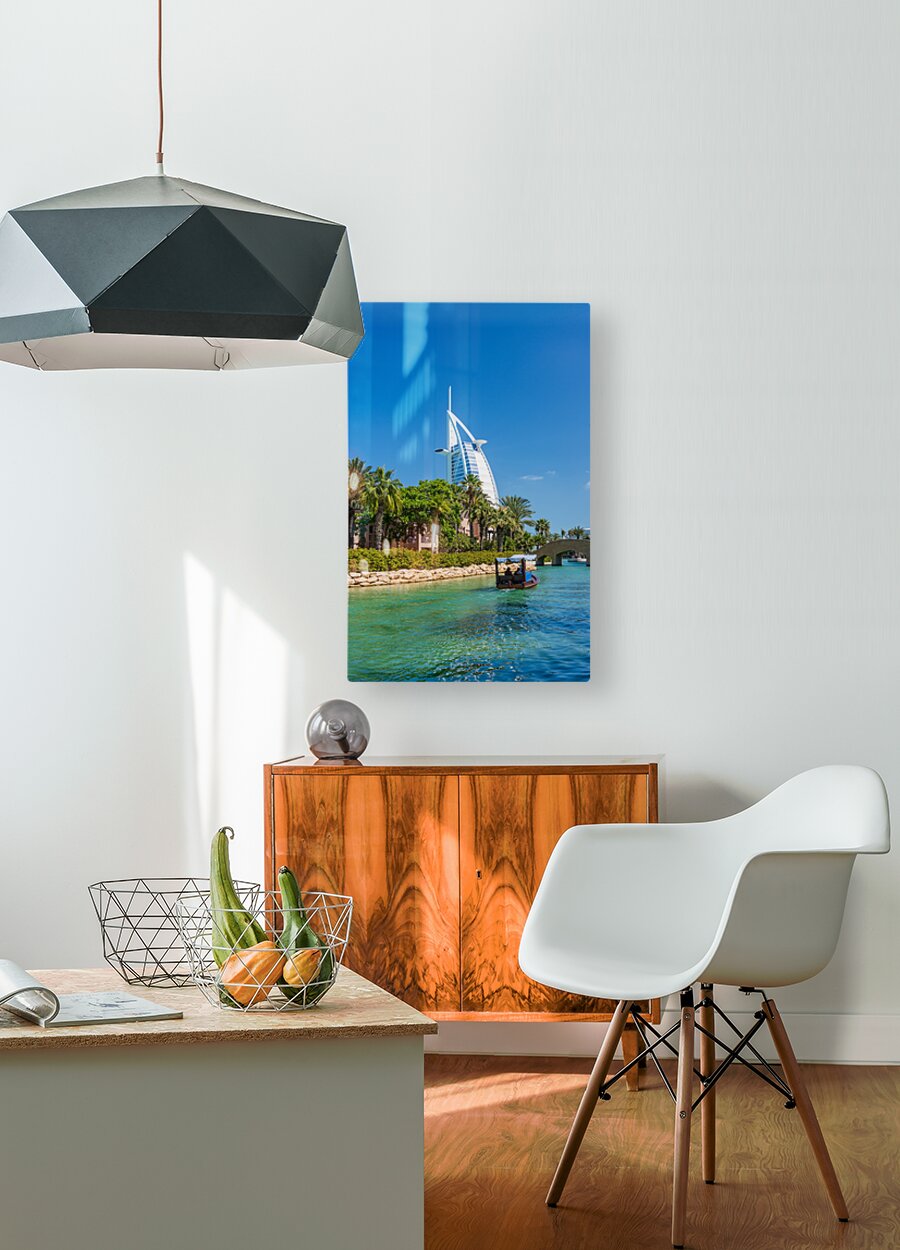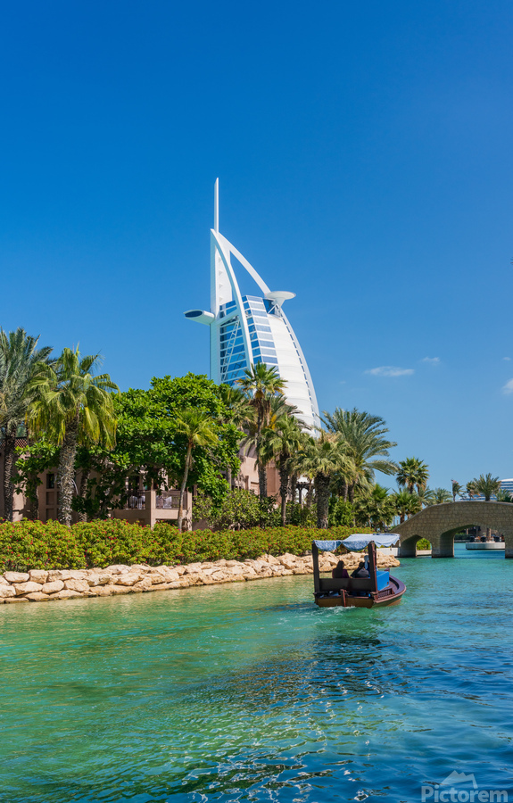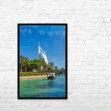 Get this artwork "Modern buildings waterways by Souk Madinat Jumeirah in Dubai" in a framed print.