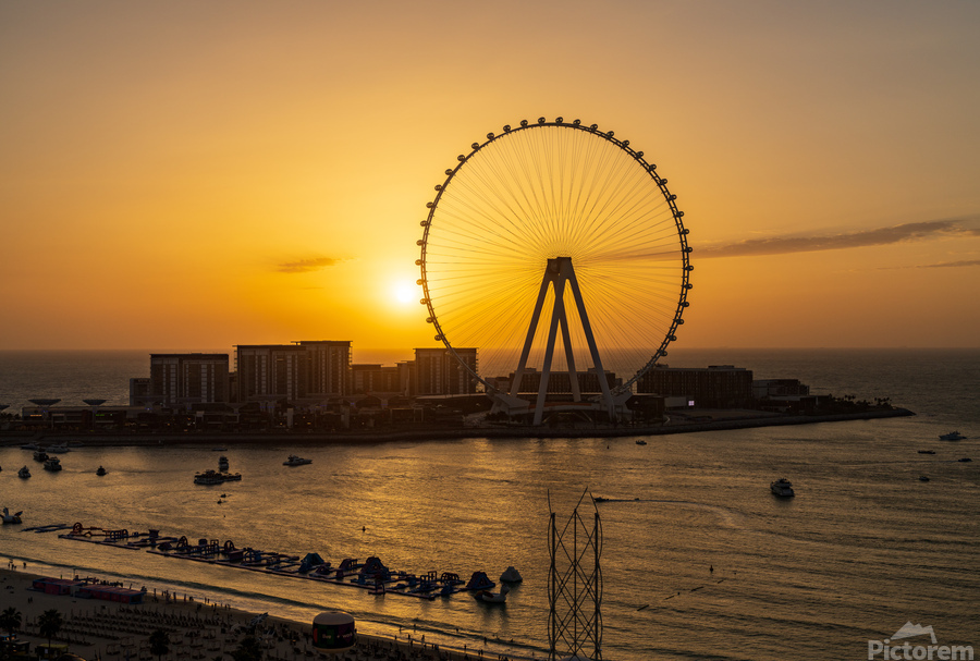 ABOUT THIS ARTWORK: SUNSET BEHIND AIN DUBAI OBSERVATION WHEEL ON BLUEWATERS ISLAND