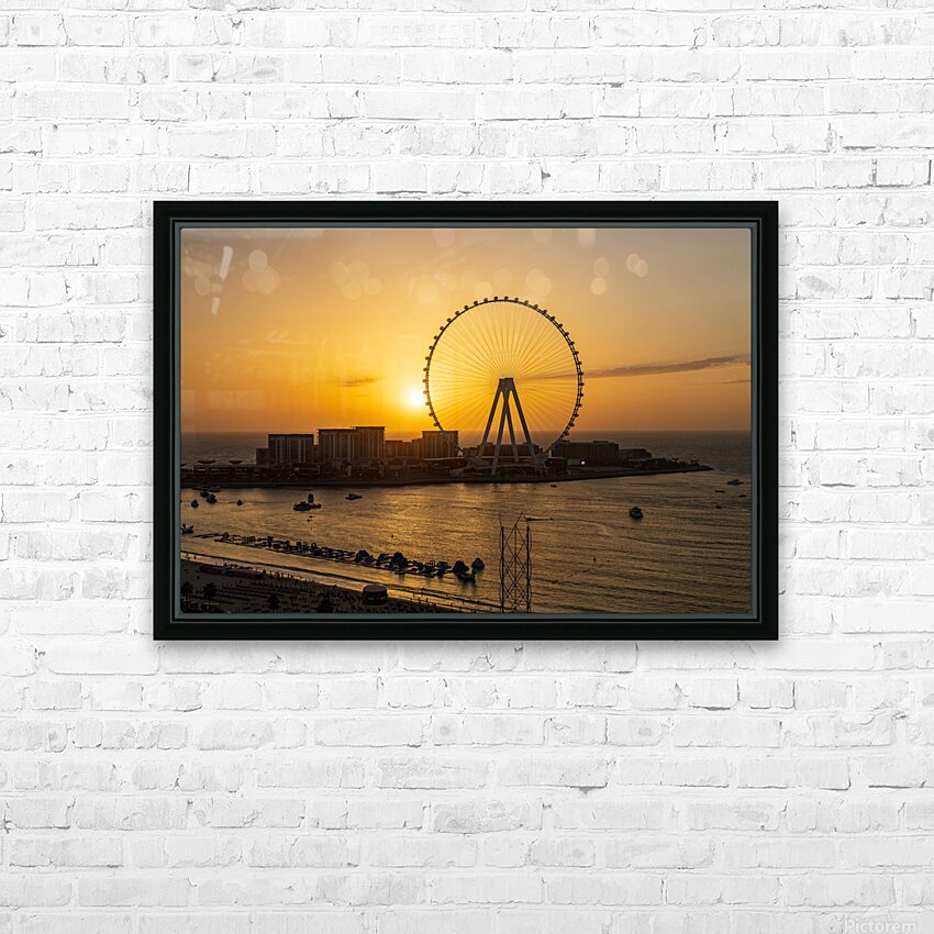 Sunset behind Ain Dubai observation wheel on Bluewaters Island Picture Frame Printing