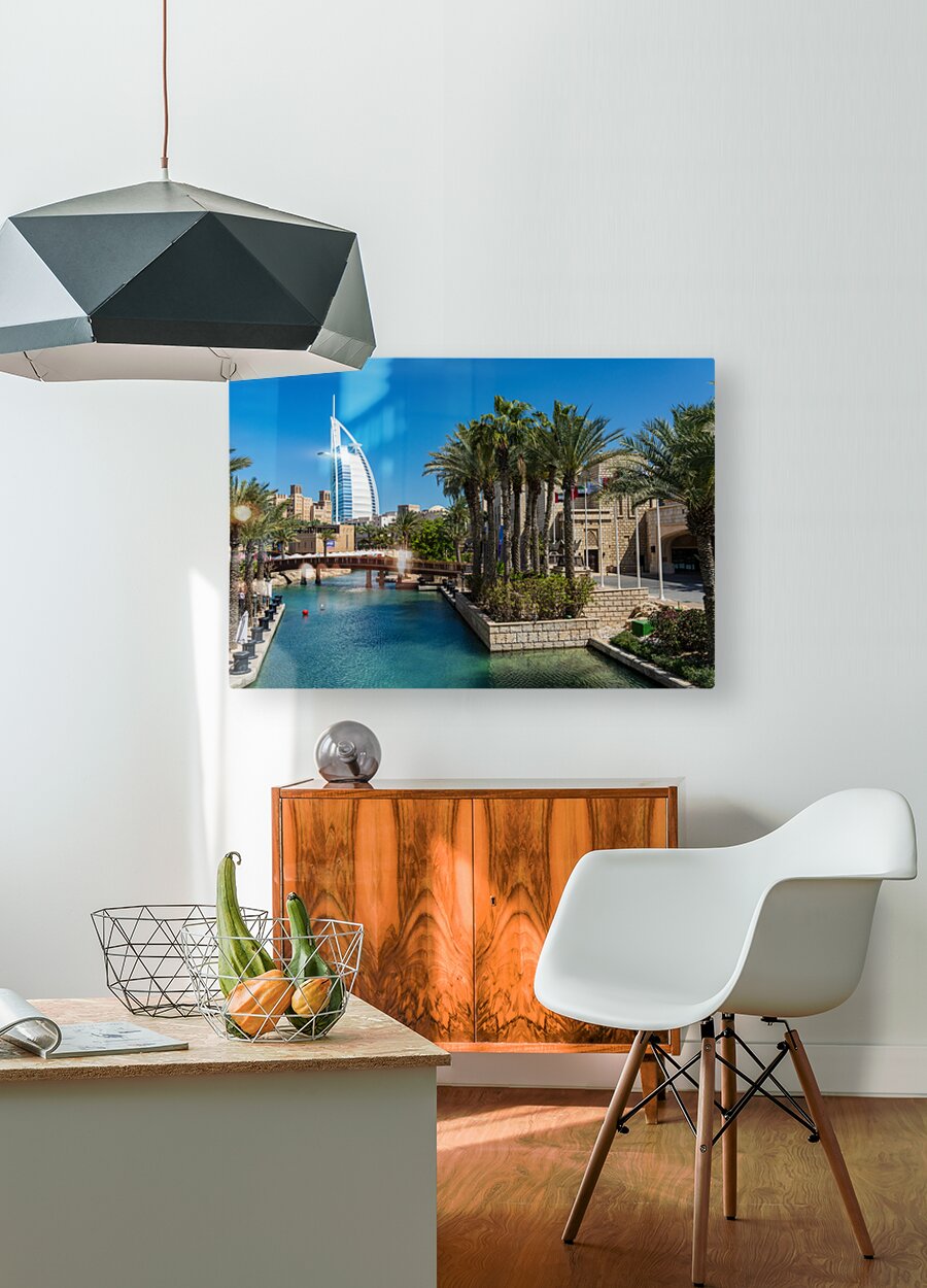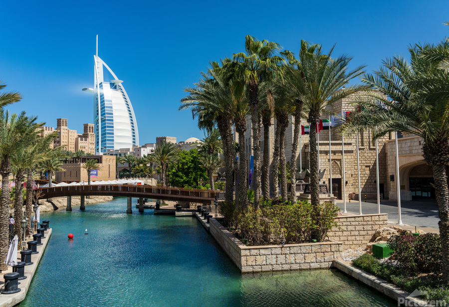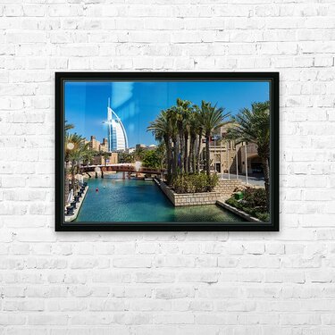 Get this artwork "View of waterways around Souk Madinat Jumeirah in Dubai" in a framed print.