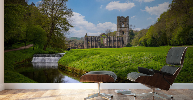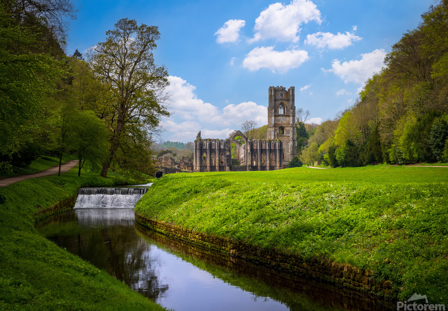 ABOUT THIS ARTWORK: SPRINGTIME AT FOUNTAINS ABBEY RUINS IN YORKSHIRE ENGLAND