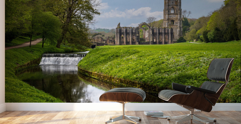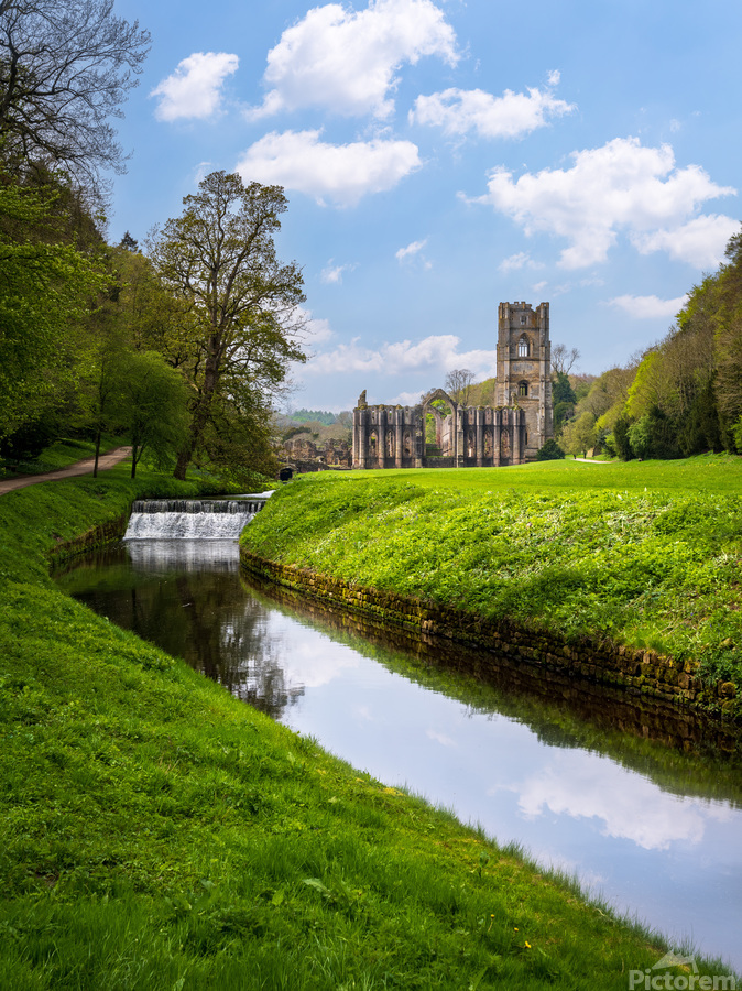 ABOUT THIS ARTWORK: SPRINGTIME AT FOUNTAINS ABBEY RUINS IN YORKSHIRE ENGLAND