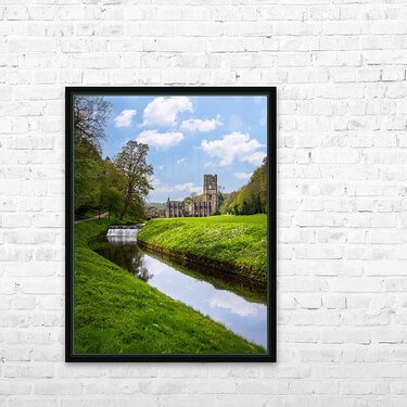 Get this artwork "Springtime at Fountains Abbey ruins in Yorkshire England" in a framed print.