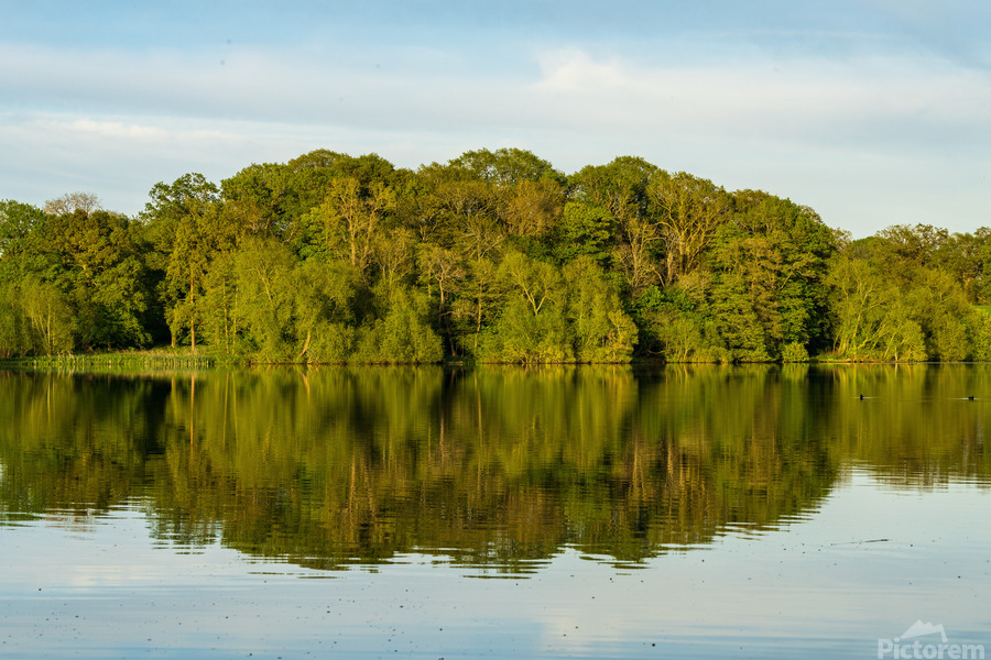 Get this artwork "View across the Mere to a reflection of distant trees in Ellesme" in a framed print.