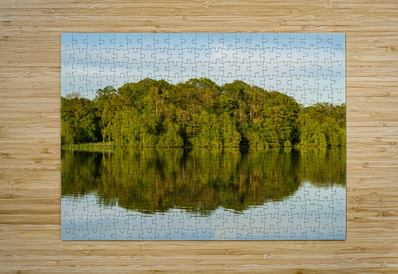 View across the Mere to a reflection of distant trees in Ellesme Steve Heap Puzzle printing