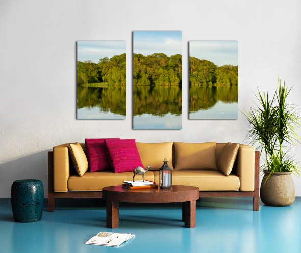 View across the Mere to a reflection of distant trees in Ellesme Canvas print