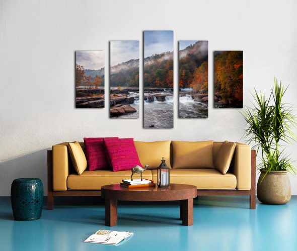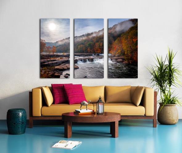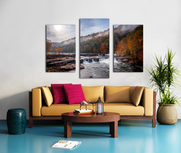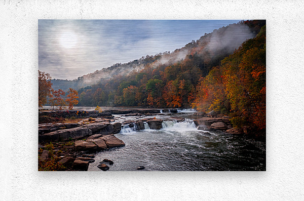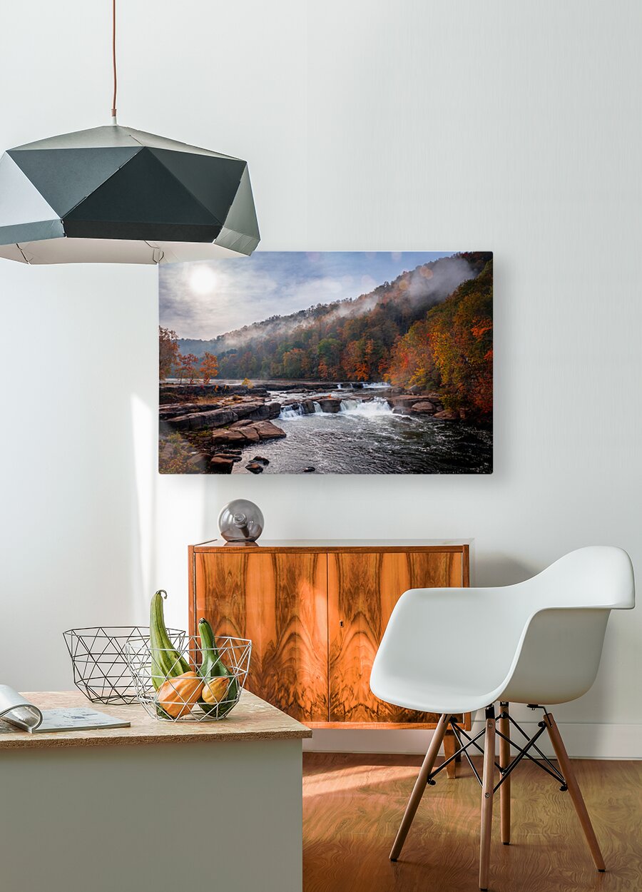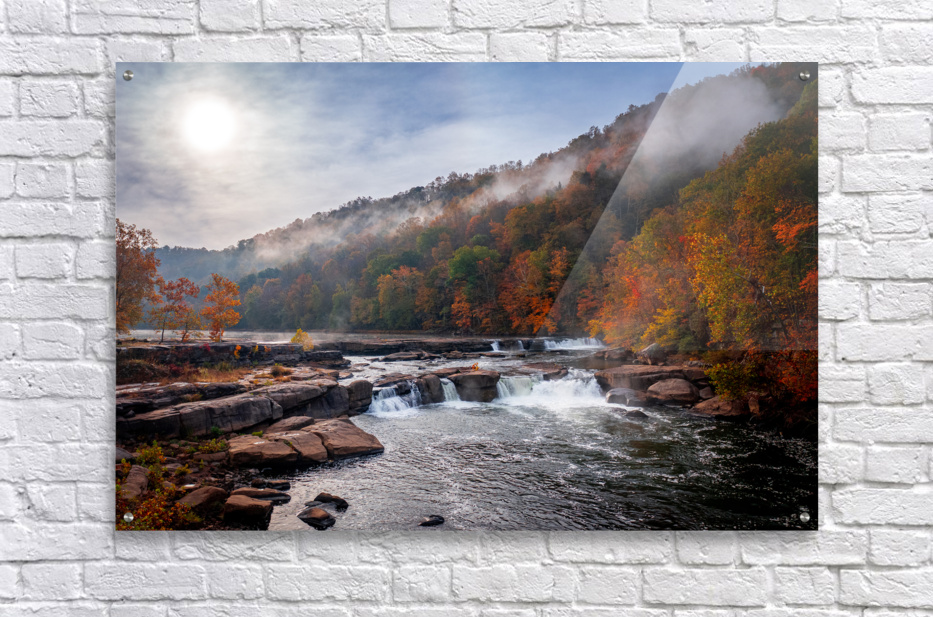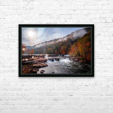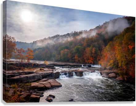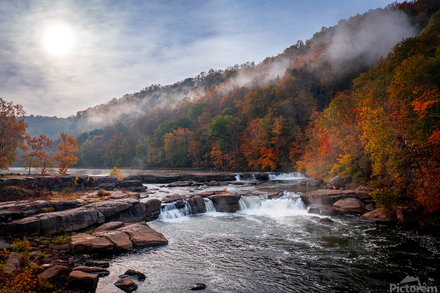 ABOUT THIS ARTWORK: SUN RISING OVER VALLEY FALLS ON A MISTY AUTUMN DAY