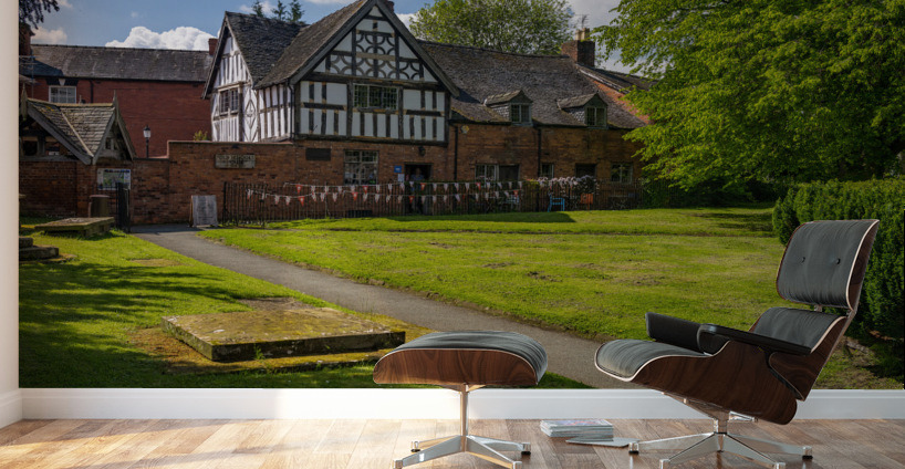 Oswestry Shropshire - 12 May 2023: Half timbered Old School House in cemetery in market town of Oswestry