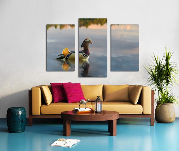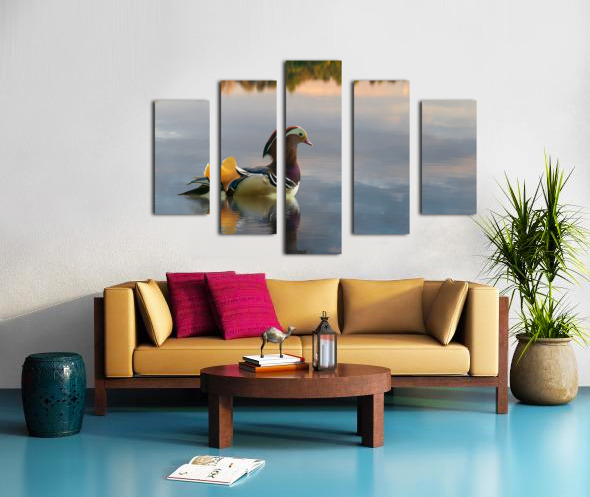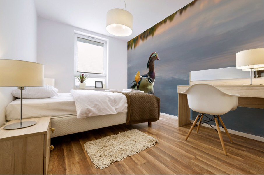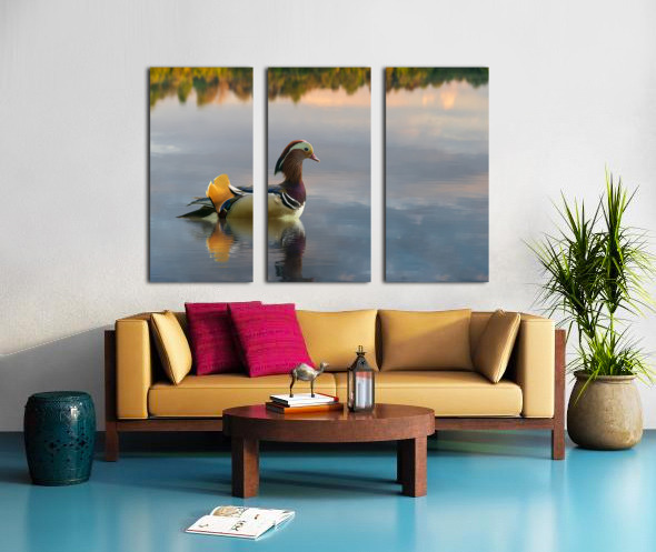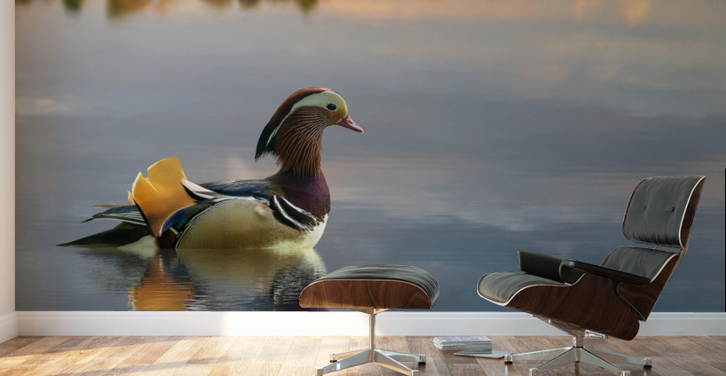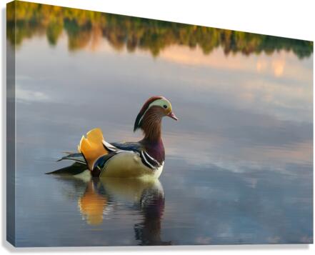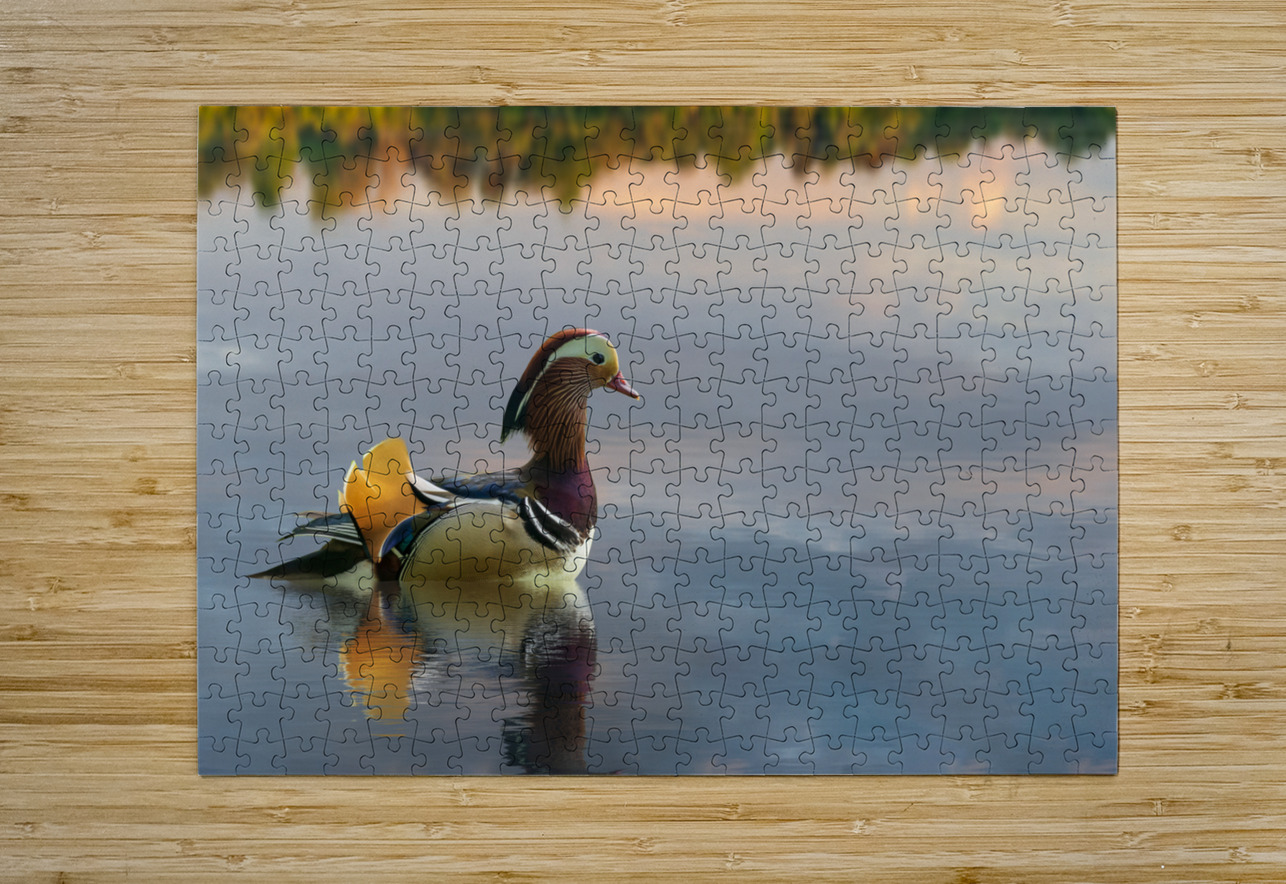 Mandarin duck floats on Ellesmere Mere to a clear reflection of  Steve Heap Puzzle printing