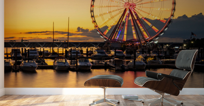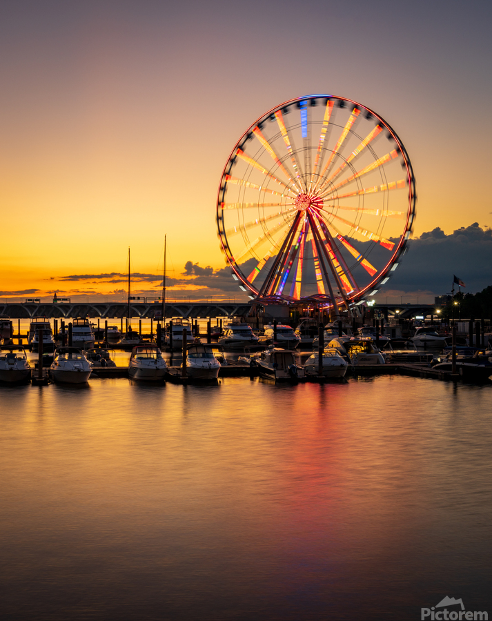 ABOUT THIS ARTWORK: FERRIS WHEEL AT NATIONAL HARBOR AT SUNSET