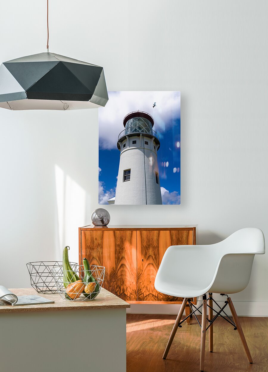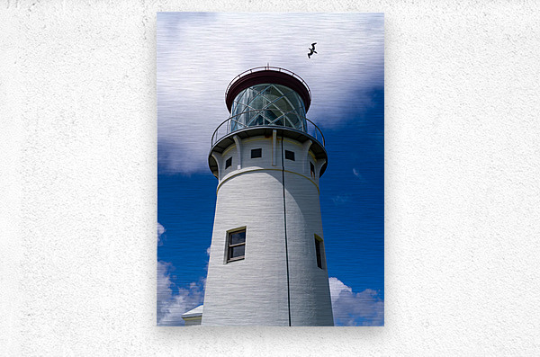 ABOUT THIS ARTWORK: DETAIL OF KILAUAE LIGHTHOUSE AGAINST BLUE SKY ON KAUAI