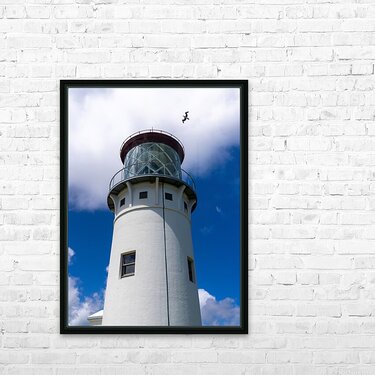 Get this artwork "Detail of Kilauae lighthouse against blue sky on Kauai" in a framed print.