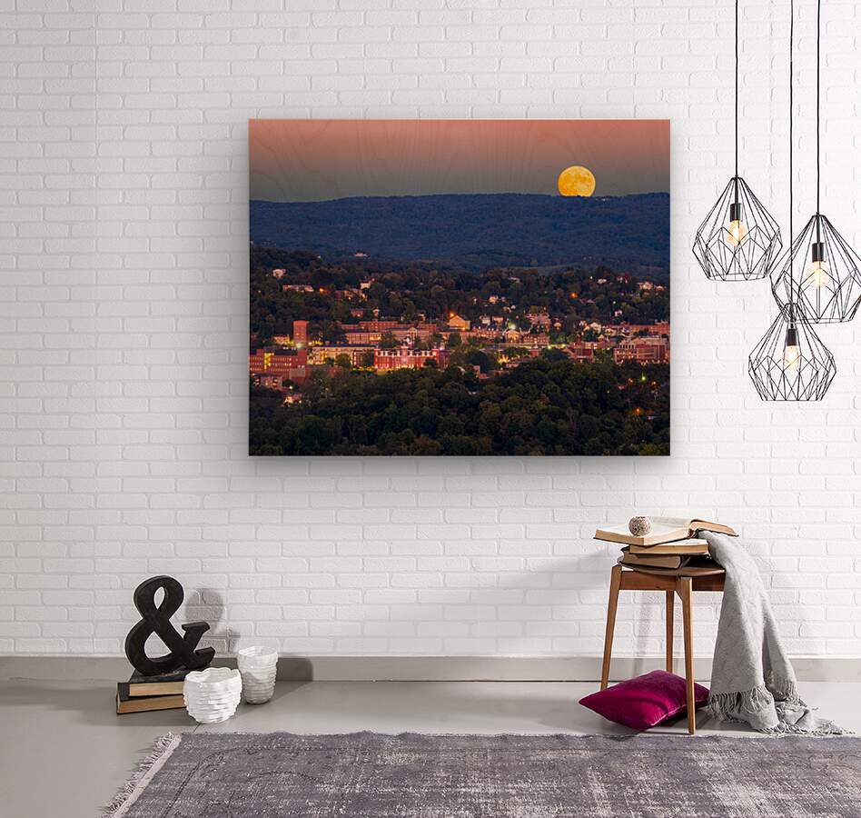 Supermoon rises in the sky above Morgantown in West Virginia  Wood print