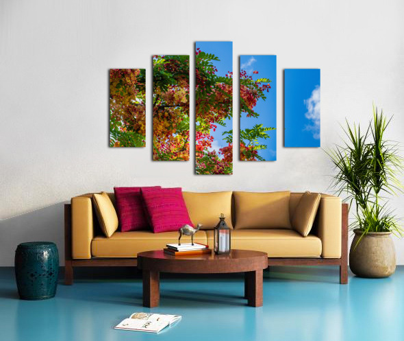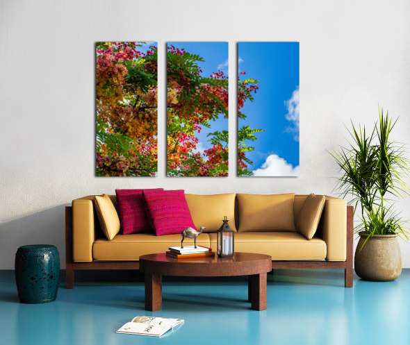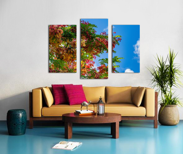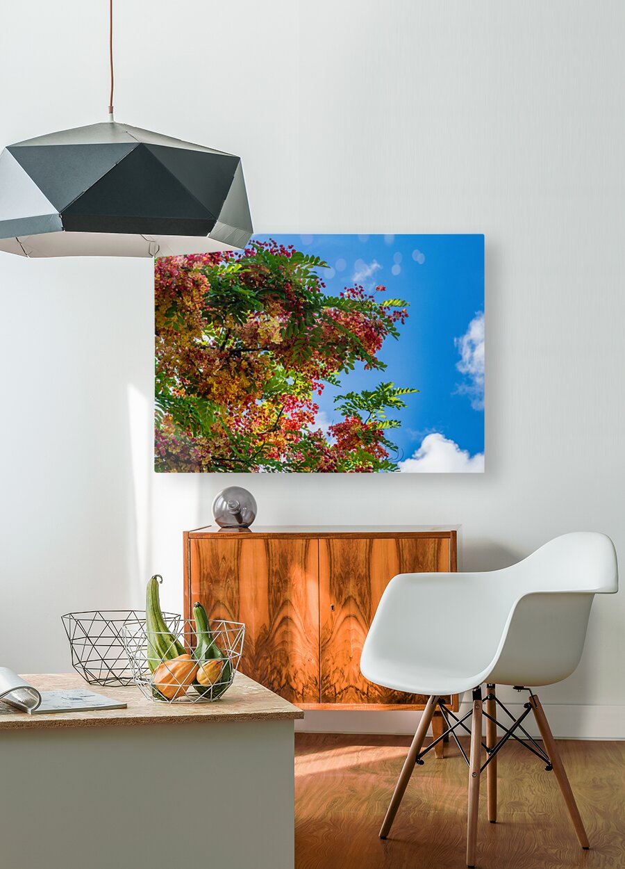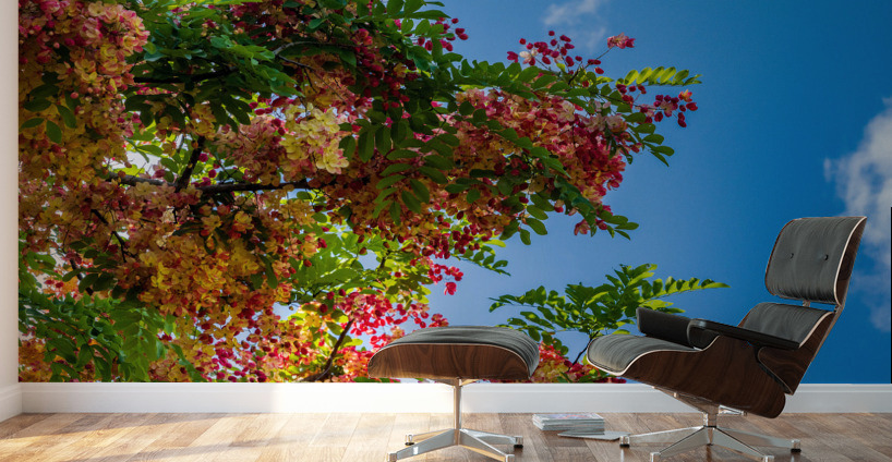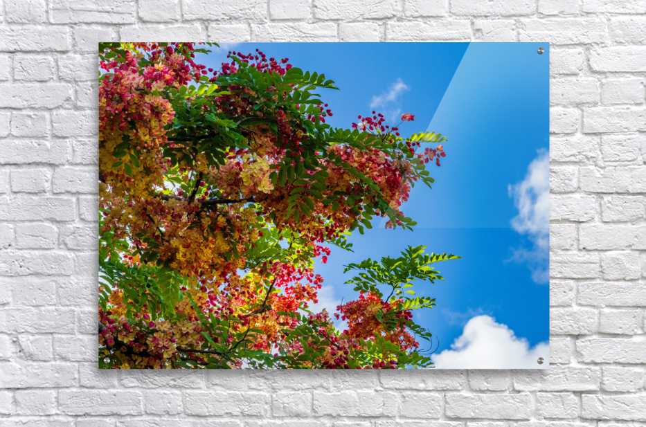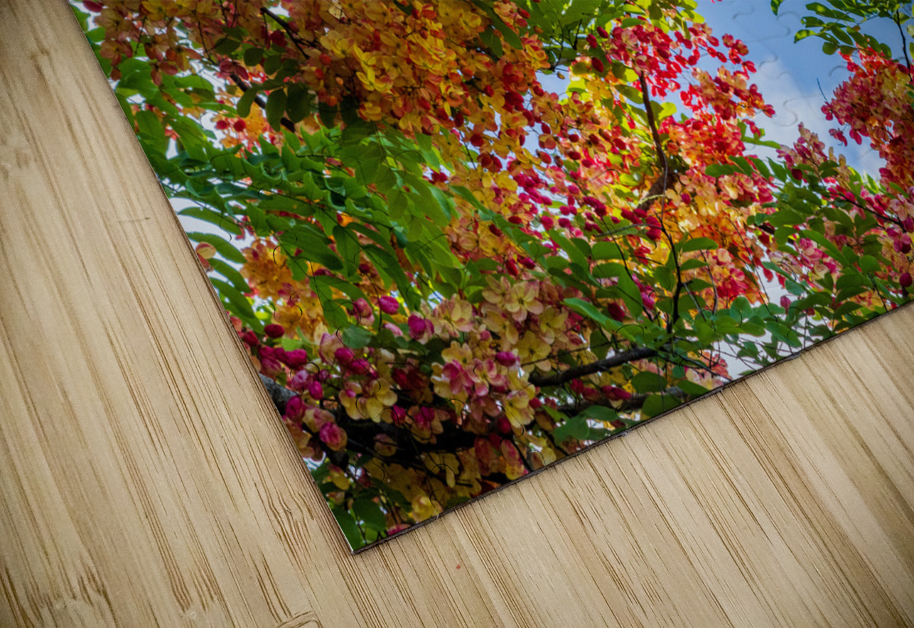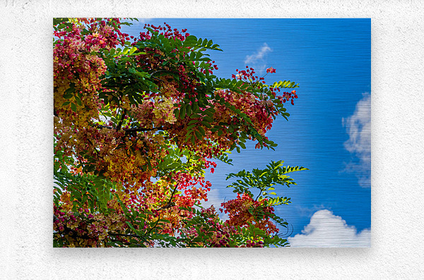 ABOUT THIS ARTWORK: GORGEOUS RAINBOW SHOWER TREE BLOSSOMS AGAINST BLUE SKY