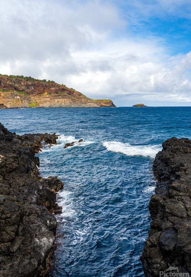 Get this artwork "Kilauae lighthouse on headland seen from Mokolea Point" in a framed print.