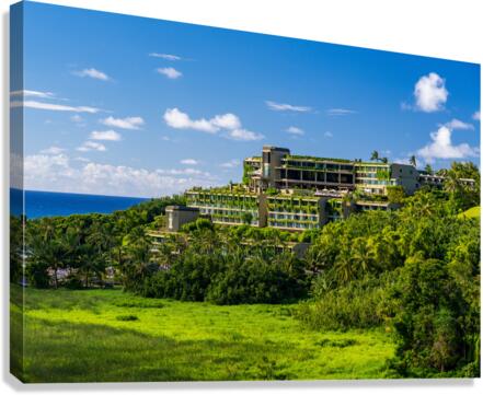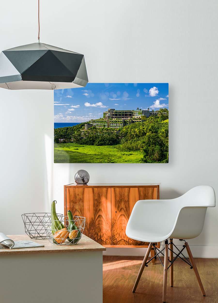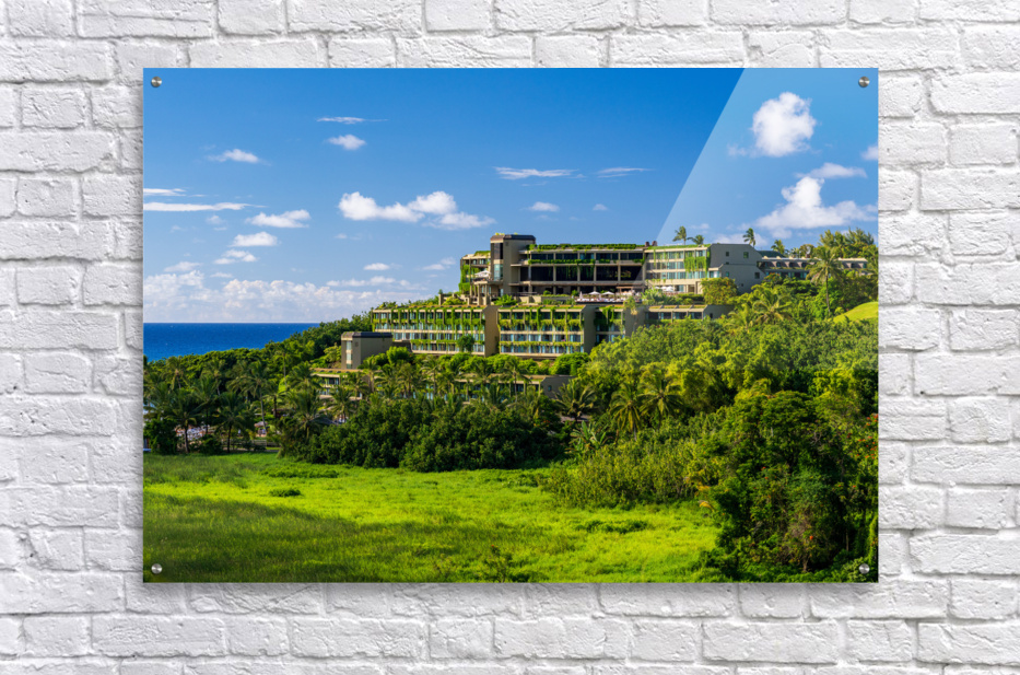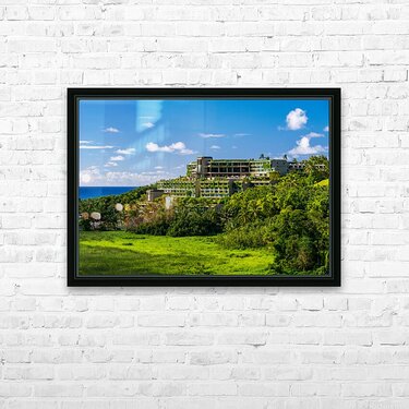 Get this artwork "Hotel nestling in the hillside on Hanalei bay on Kauai" in a framed print.