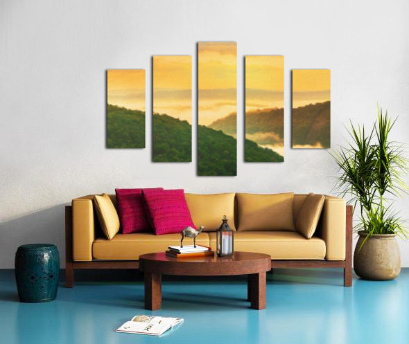 Get this artwork "Painting of Cheat River gorge at sunrise near Raven Rock" in a framed print.
