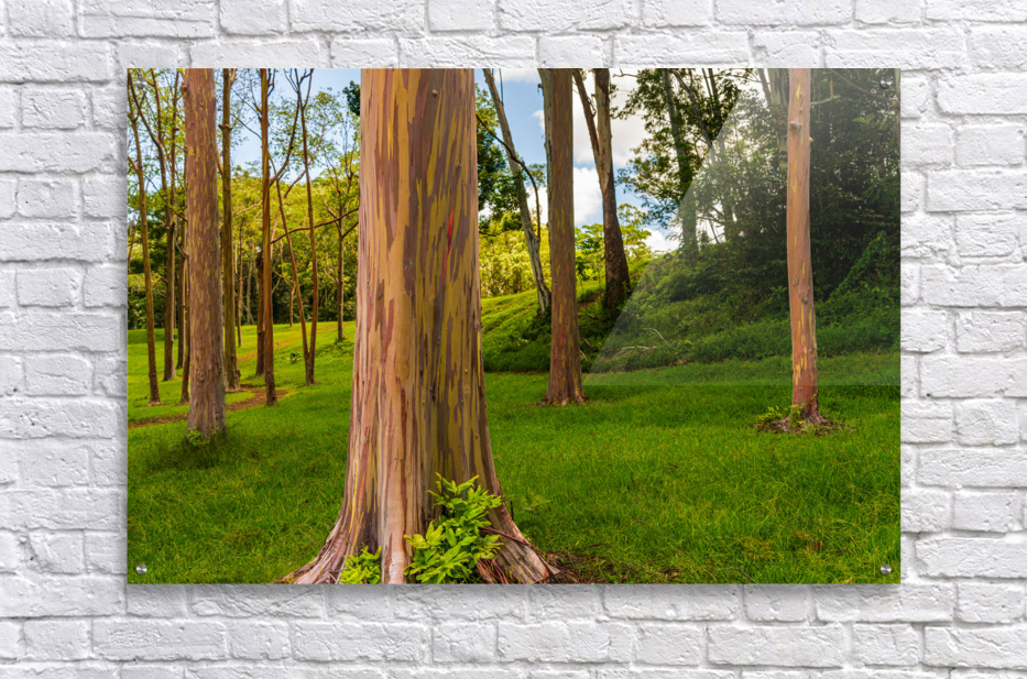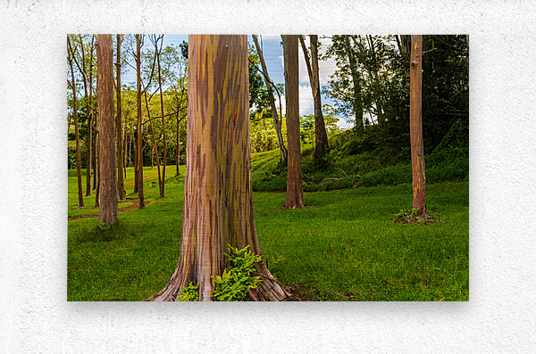 Get this artwork "Group of rainbow eucalyptus trees in Keahua Arboretum" in a framed print.
