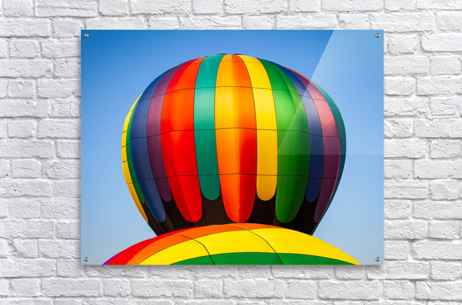 Get this artwork "Colorful hot air balloon rising above another with blue sky" in a framed print.