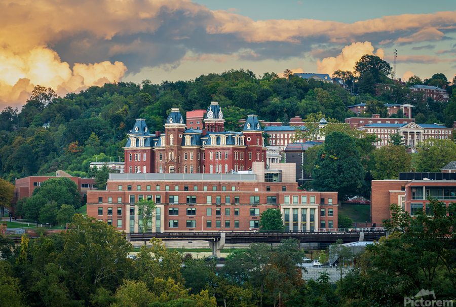 Brooks Hall and Woodburn Hall at dusk in Morgantown WV Picture Frame Printing