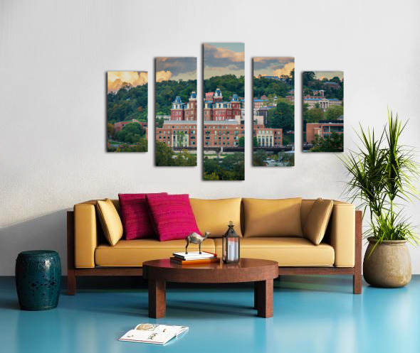 Get this artwork "Brooks Hall and Woodburn Hall at dusk in Morgantown WV" in a framed print.