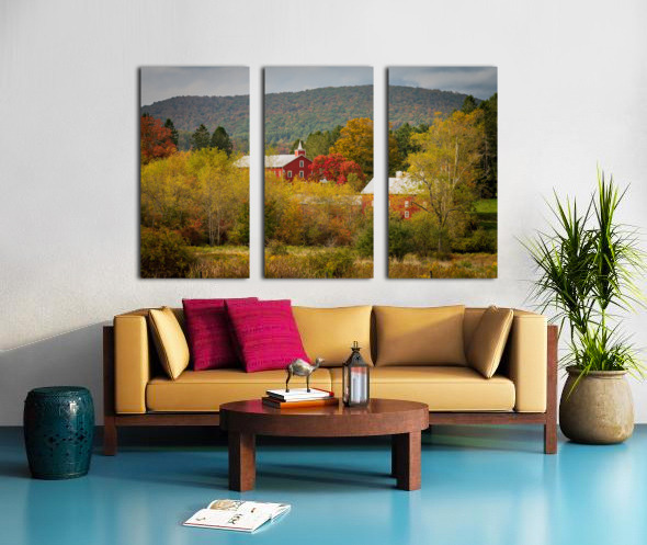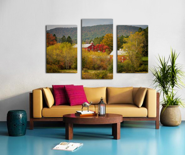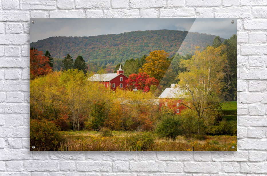 Get this artwork "Historic red barn and farm nestled in fall colors in West Virgin" in a framed print.