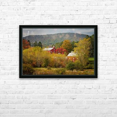Historic red barn and farm nestled in fall colors in West Virgin Picture Frame Printing