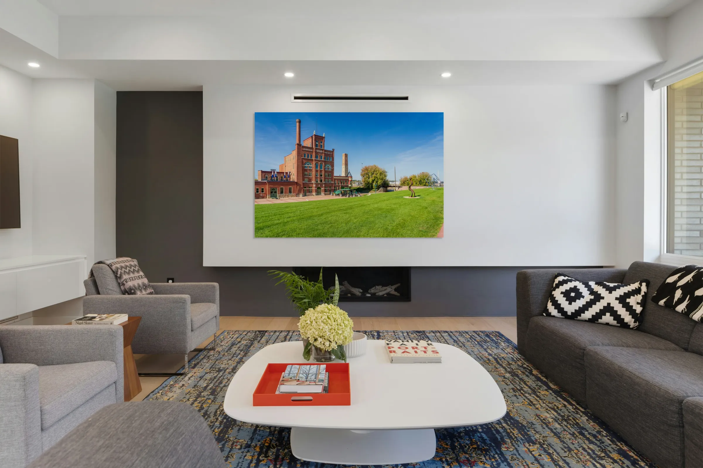 ABOUT THIS ARTWORK: HISTORIC DUBUQUE STAR BREWERY ALONGSIDE MISSISSIPPI RIVER