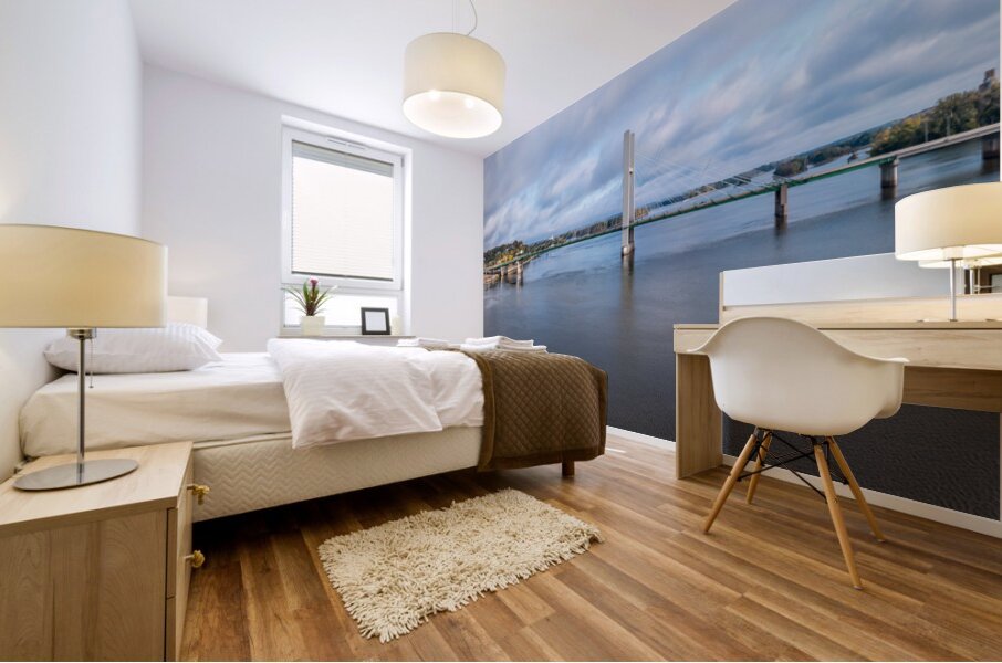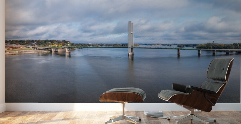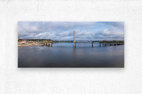 Modern suspension bridge from Burlington Iowa to Illinois  Wood print