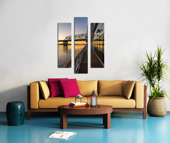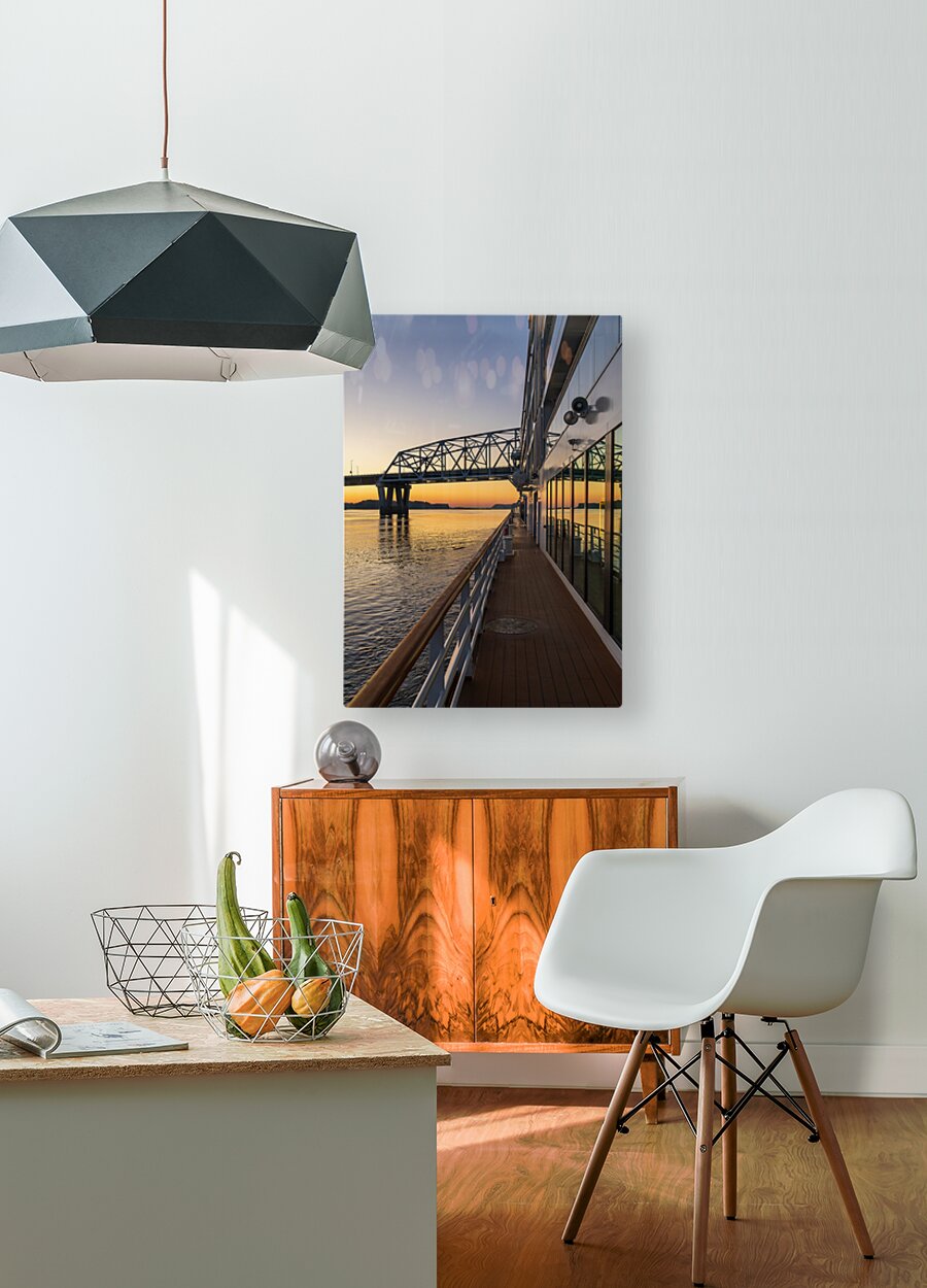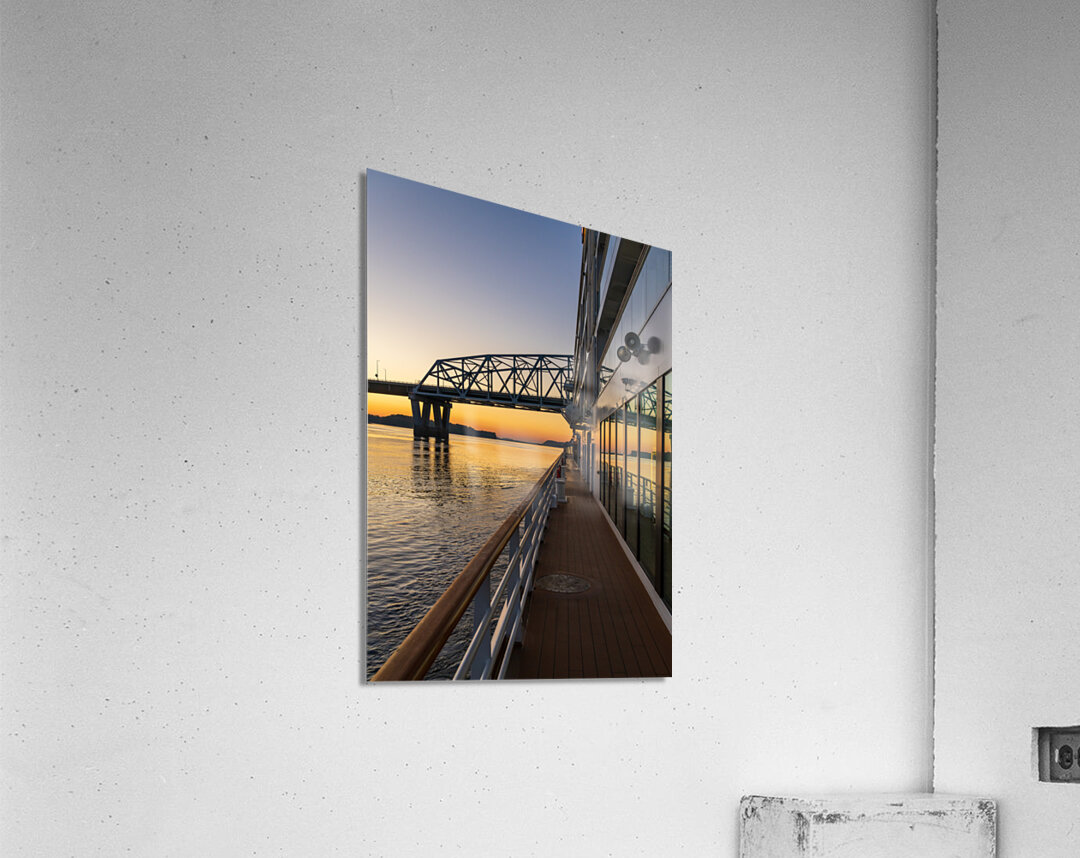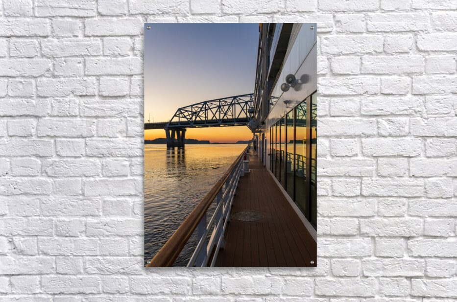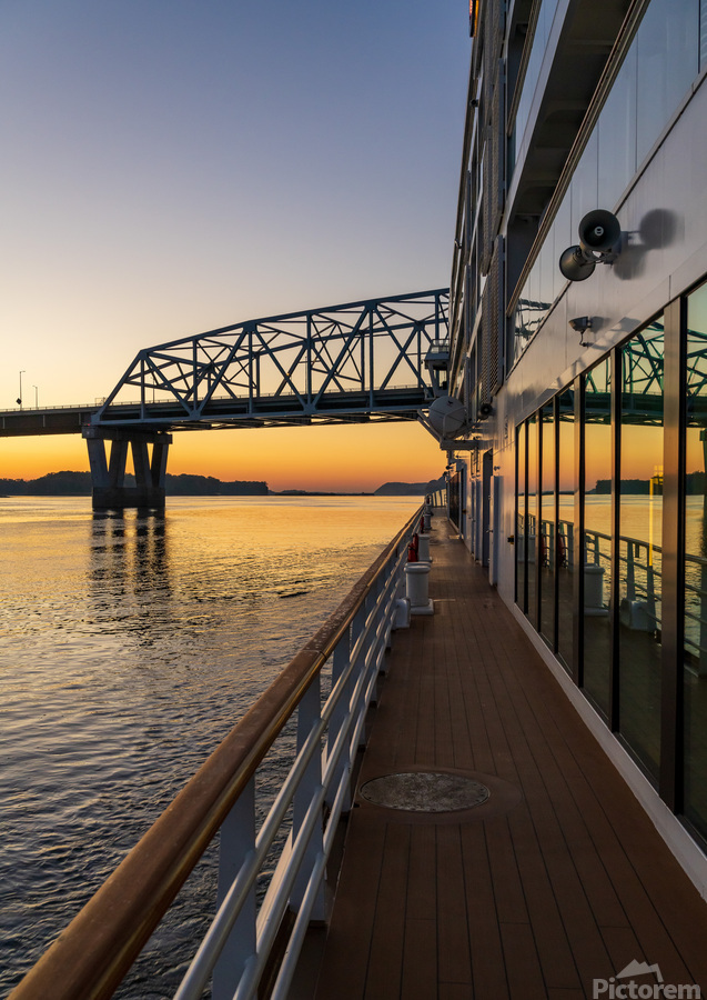 ABOUT THIS ARTWORK: RIVER CRUISE BOAT SAILS TO MARK TWAIN MEMORIAL ROAD BRIDGE