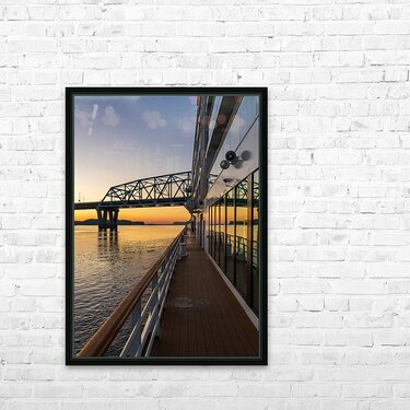 River cruise boat sails to Mark Twain Memorial road bridge Picture Frame Printing