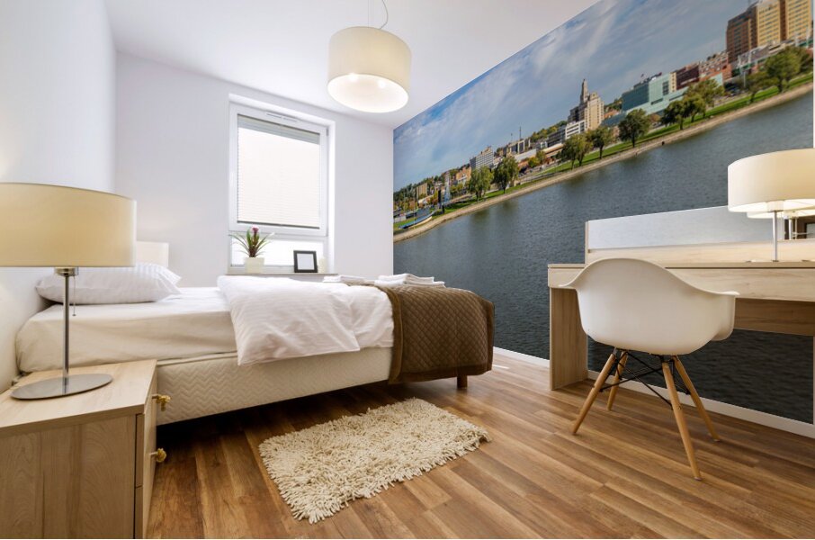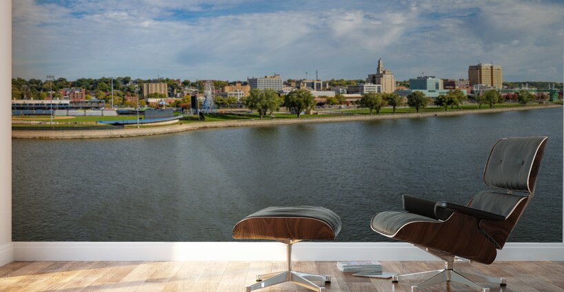 Modern Woodmen Park and downtown of Davenport IA Wood print