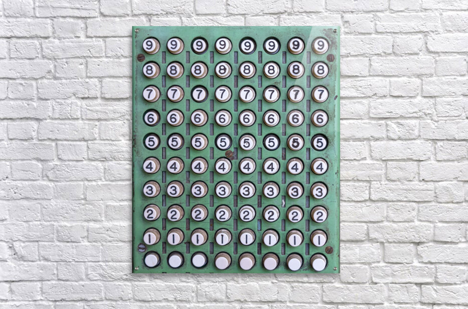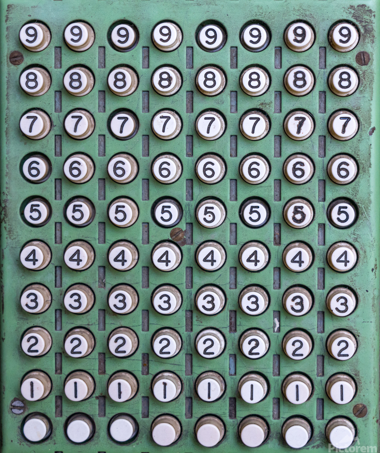 Simple layout of the number keys on antique mechanical calculator or accounting machine