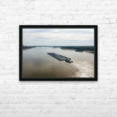 Get this artwork "Large barge boat sails under Memphis bridge in October 2023" in a framed print.
