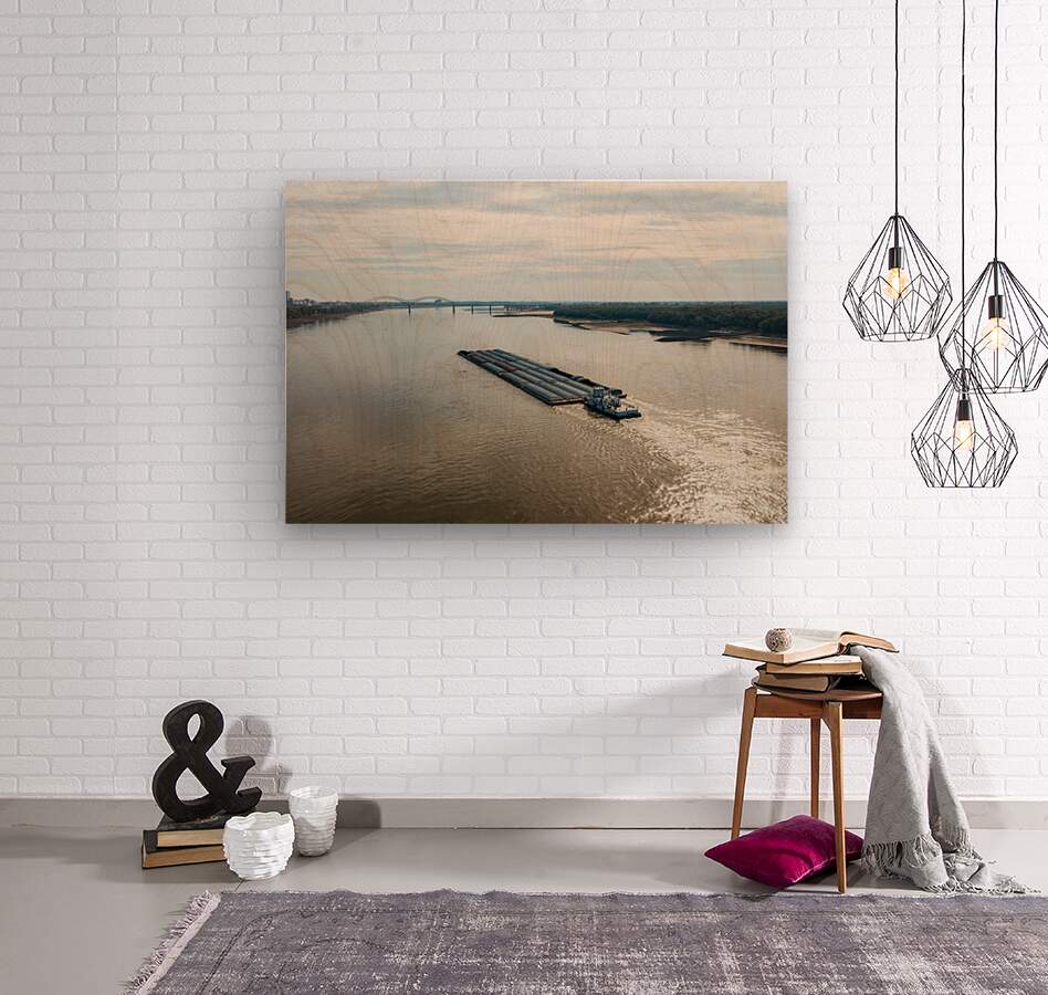 ABOUT THIS ARTWORK: LARGE BARGE BOAT SAILS UNDER MEMPHIS BRIDGE IN OCTOBER 2023