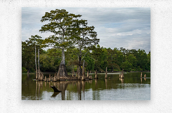 ABOUT THIS ARTWORK: LARGE BALD CYPRESS TREES RISE OUT OF WATER IN ATCHAFALAYA BASIN