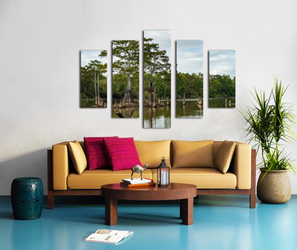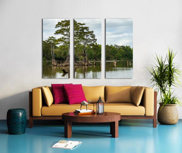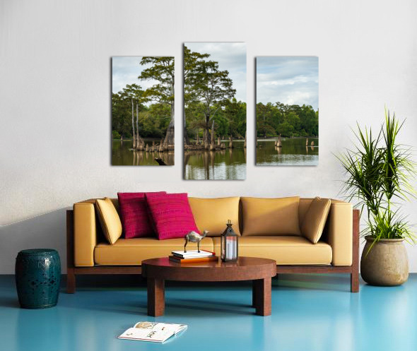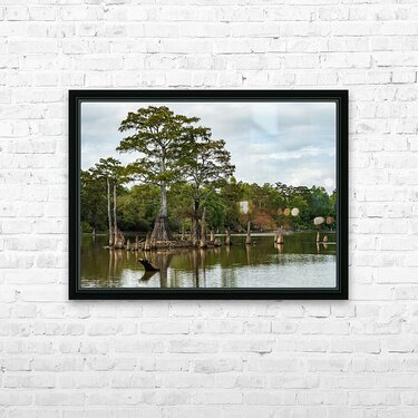 Get this artwork "Large bald cypress trees rise out of water in Atchafalaya basin" in a framed print.