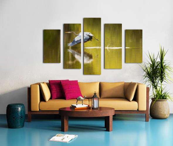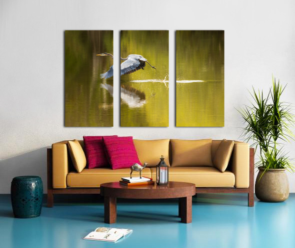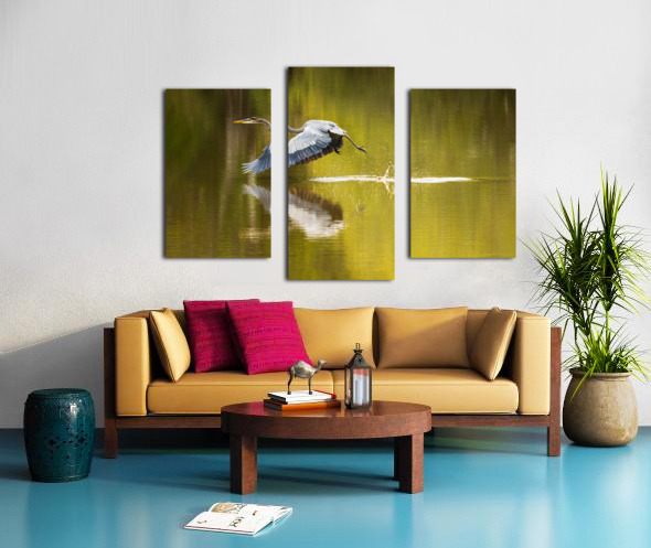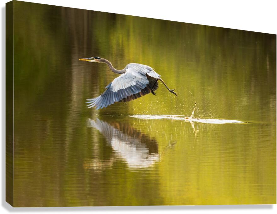 Great blue heron taking off from calm water in Atchafalaya basin Canvas print