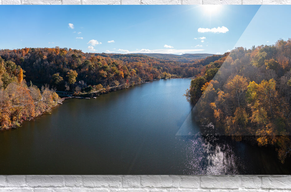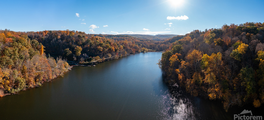ABOUT THIS ARTWORK: PANORAMIC FALL TREES AROUND THE WATER AT CHEAT LAKE PARK MORGAN