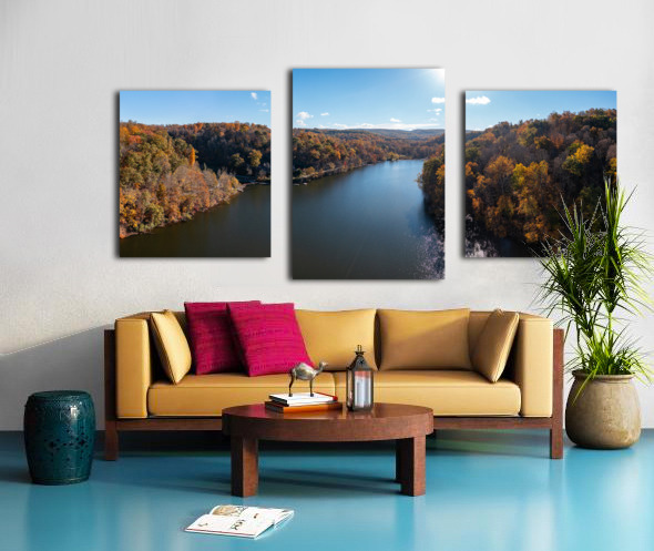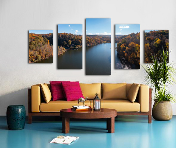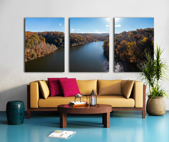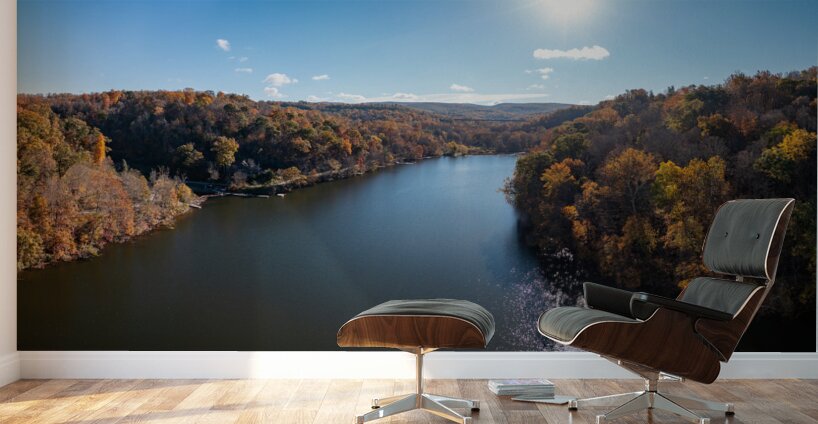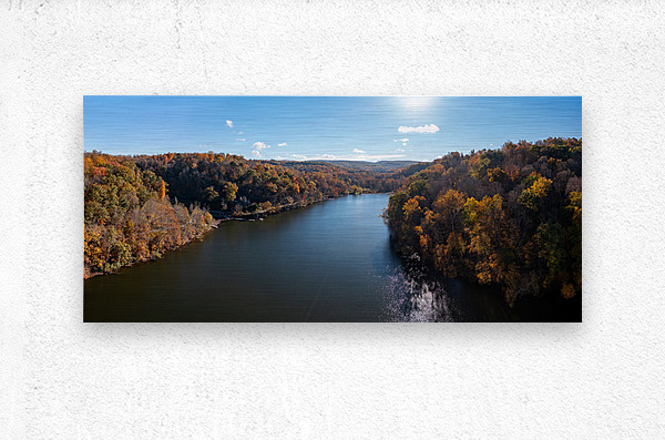 Panoramic fall trees around the water at Cheat Lake Park Morgan Wood print