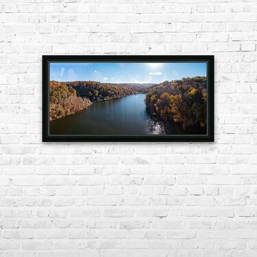 Panoramic fall trees around the water at Cheat Lake Park Morgan Picture Frame Printing