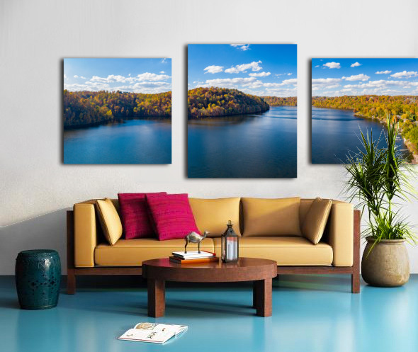 Aerial panorama of fall colors on Cheat Lake Morgantown WV with Picture Frame Printing